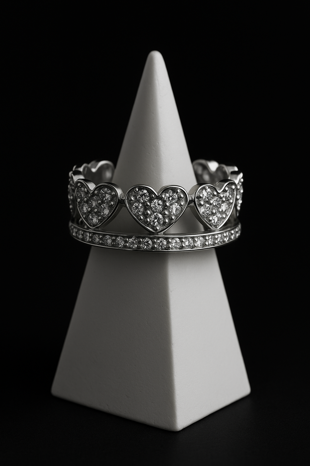 Tam Tur Taşlı Kalp Figürlü Aşk Yüzüğü