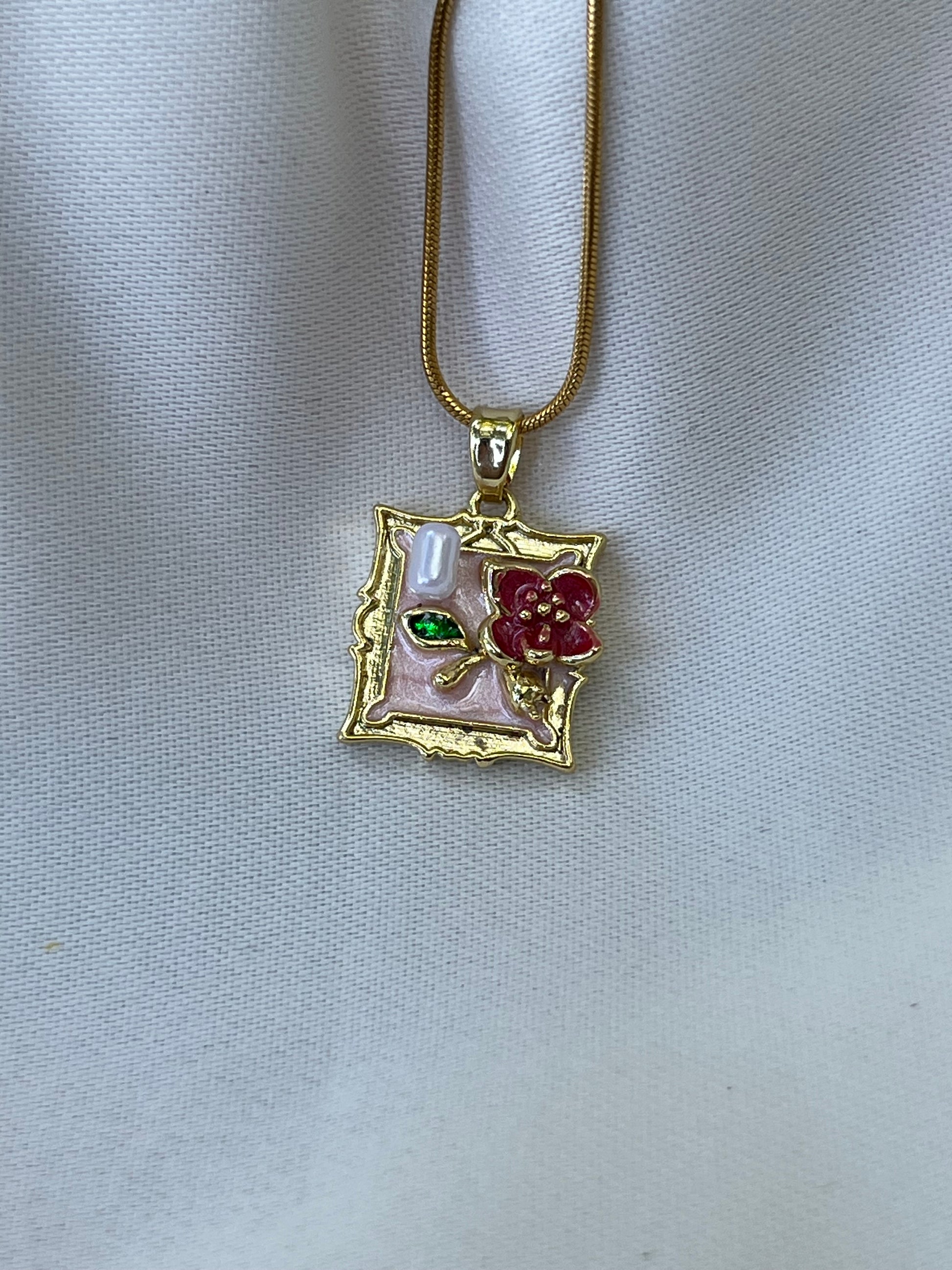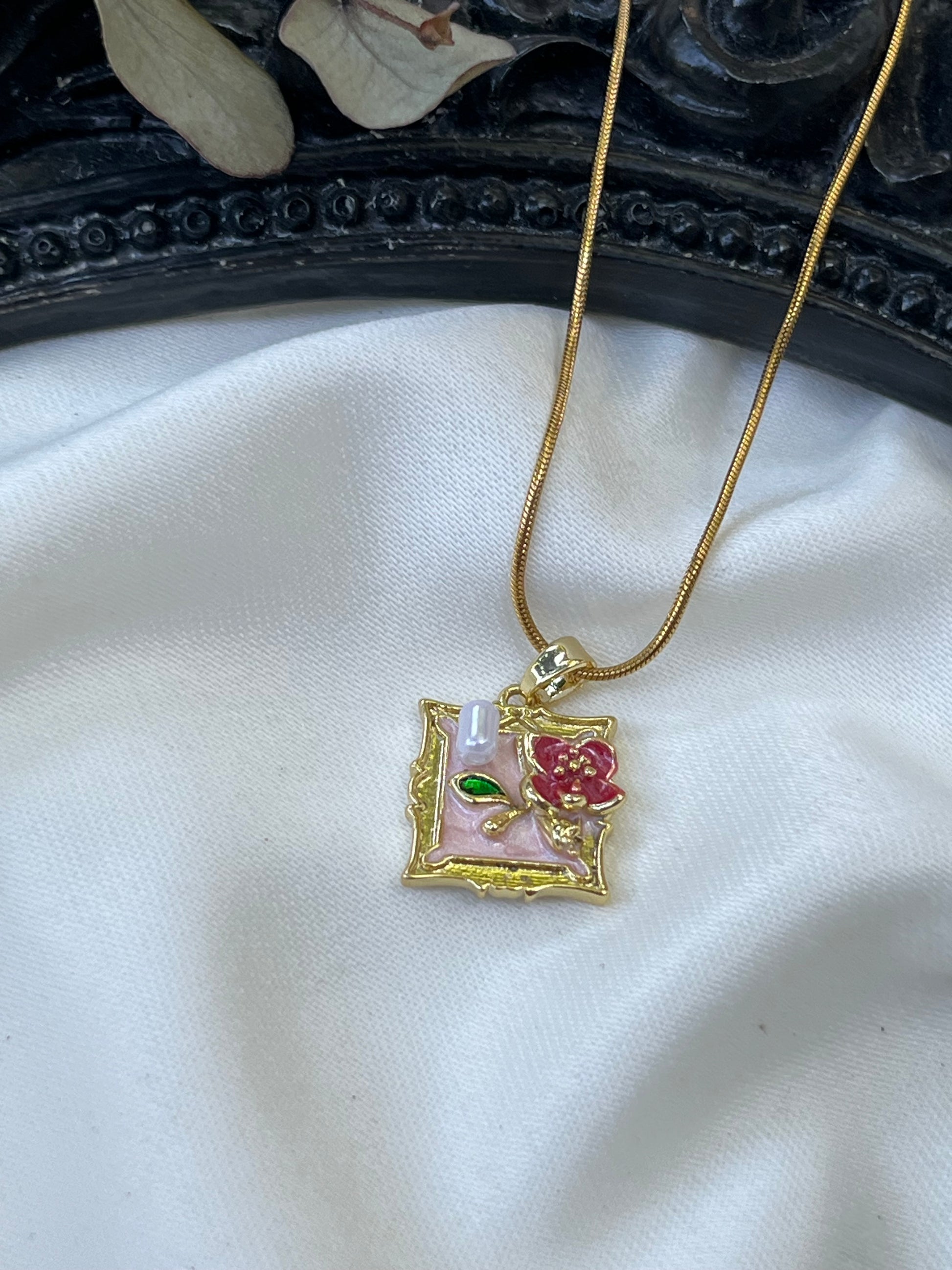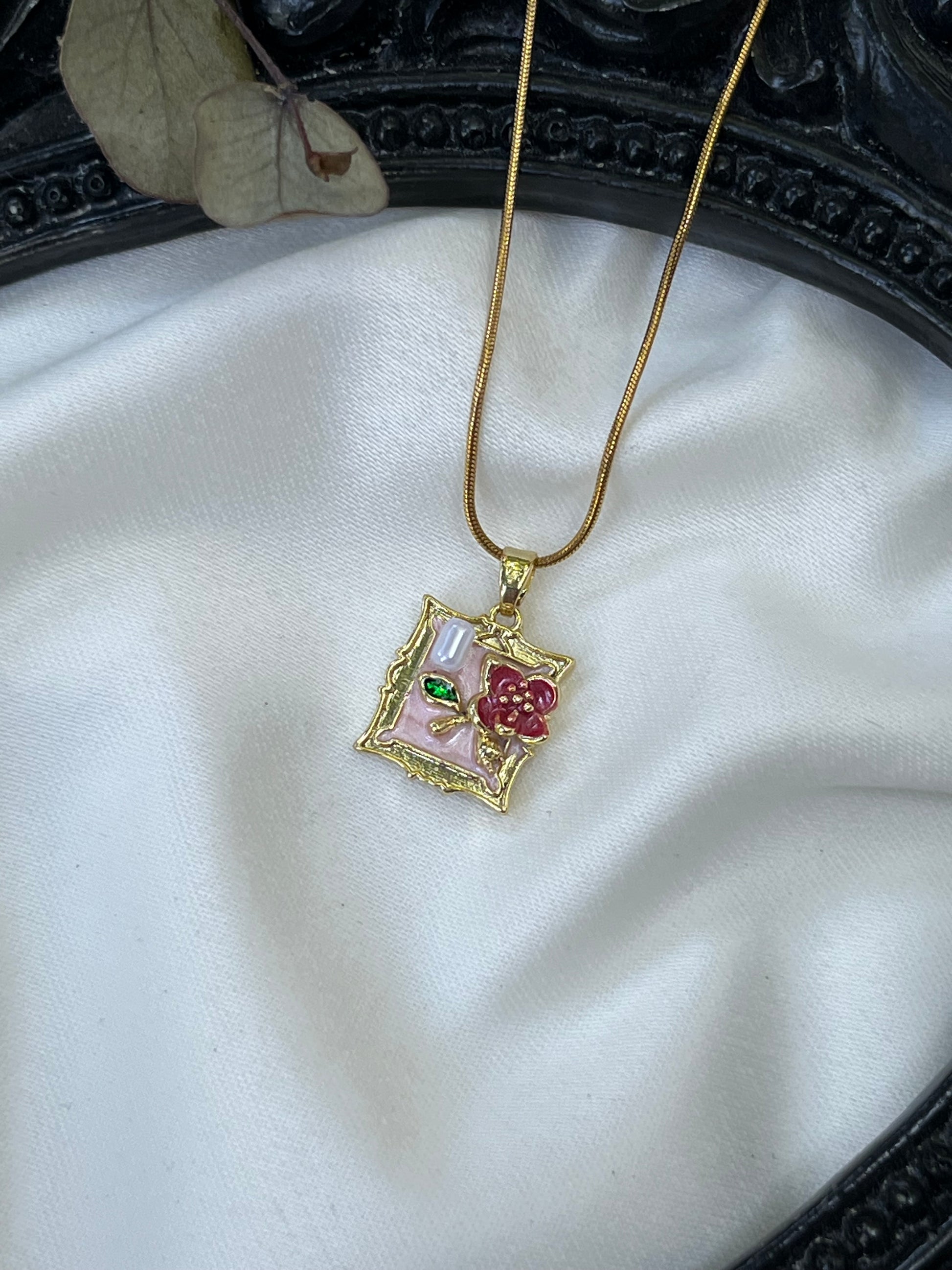 Çerçeve Tasarımlı Çiçek Kolye