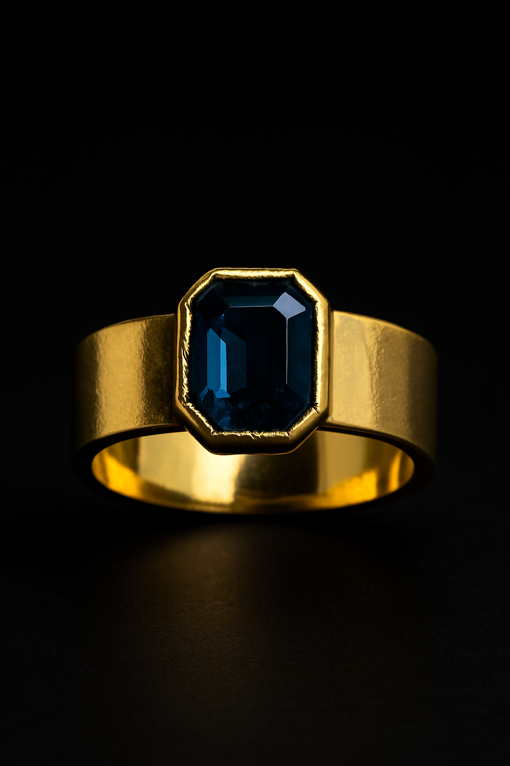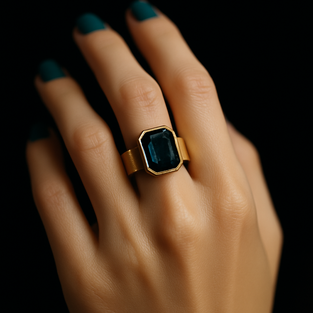 Geniş Yüzük Tasarımı – Dikdörtgen Lacivert Taşlı”