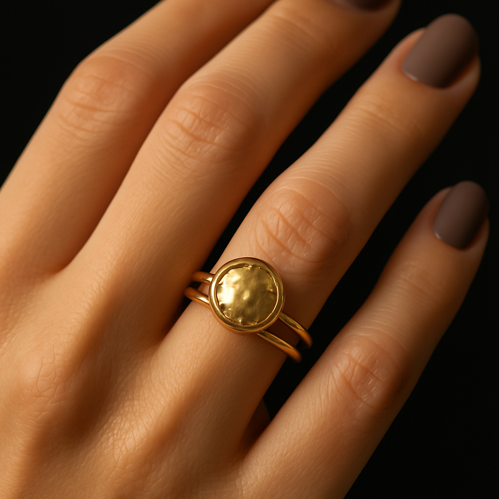 Minimal Dokulu Kahverengi Doğaltaş Yüzük