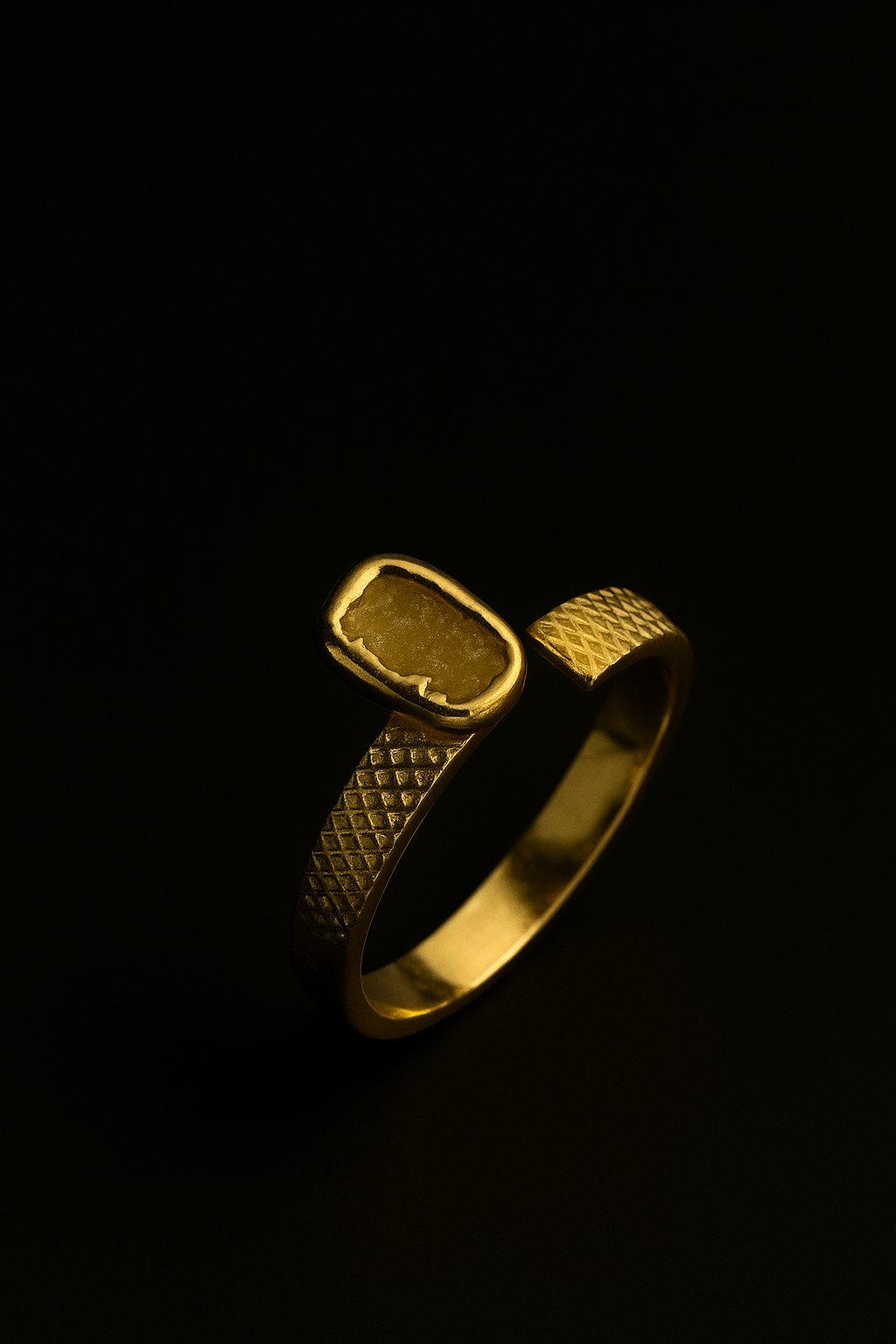 Minimalist Tasarım: Mat Sarı Doğal Taşlı Açık Yüzük