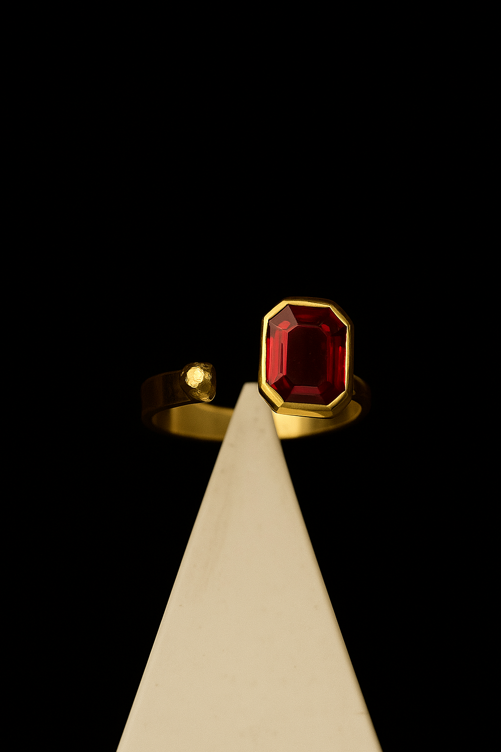 Modern Şıklık: Kırmızı Taş ve Minimal Detaylı Yüzük